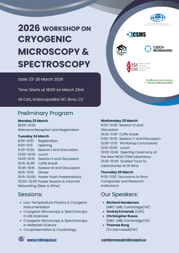 Host & Venue Institute of Scientific Instruments, Czech Academy of Sciences (ISI CAS), Královopolská 147, 612 00 Brno, Czech Republic.